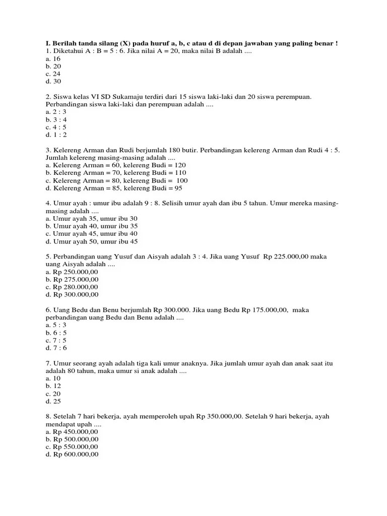 Itulah rincian contoh soal perbandingan uang dan selisih, contoh soal ujian nasional 2019 matematika smp mts materi perbandingan cara menghitung .